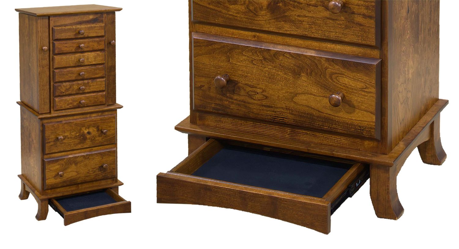 All jewelry armoires come standard with black velvet. For an additional charge you can choose from Green, Blue, Red and Brown velvet.